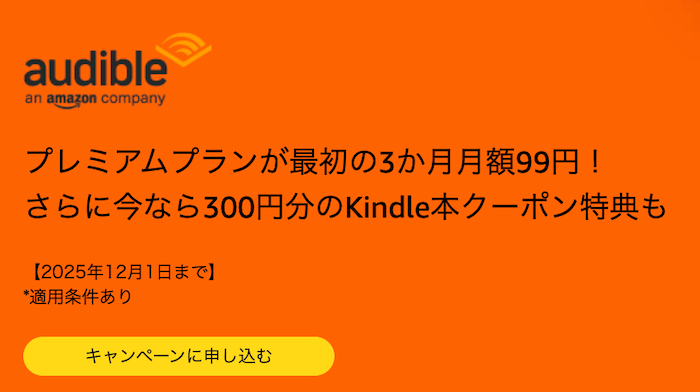 オーディブル 3ヶ月99円 キャンペーン 2025年11月