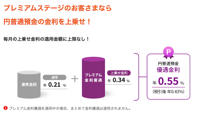 プレミアム金利優遇はauじぶん銀行の利用状況に応じてアップするステージ判定「じぶんプラス」が最高ランクの「プレミアムステージ」であれば適用されます。