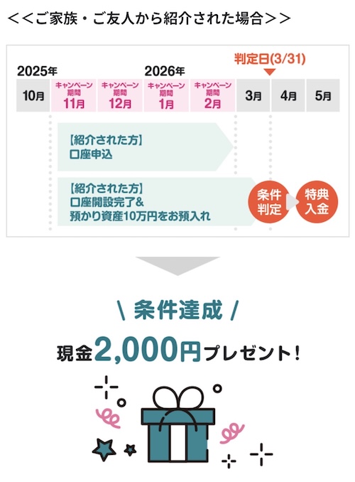2026年2月28日まで口座開設後の紹介コード入力&条件達成で現金2,000円プレゼントキャンペーンも実施中。