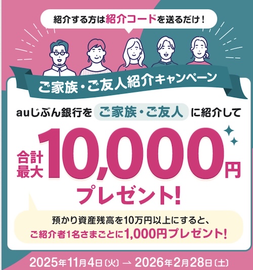 2/28まで!auじぶん銀行は紹介経由の口座開設で現金2,000円進呈!