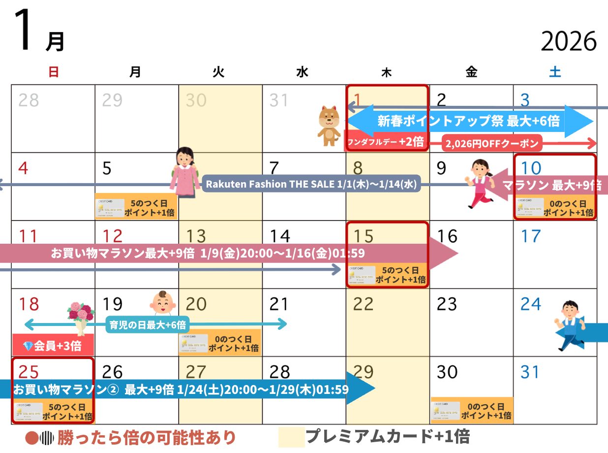 楽天市場 1月のイベントまとめ【2026年最新】セール日程カレンダーとお得な日ランキングも!