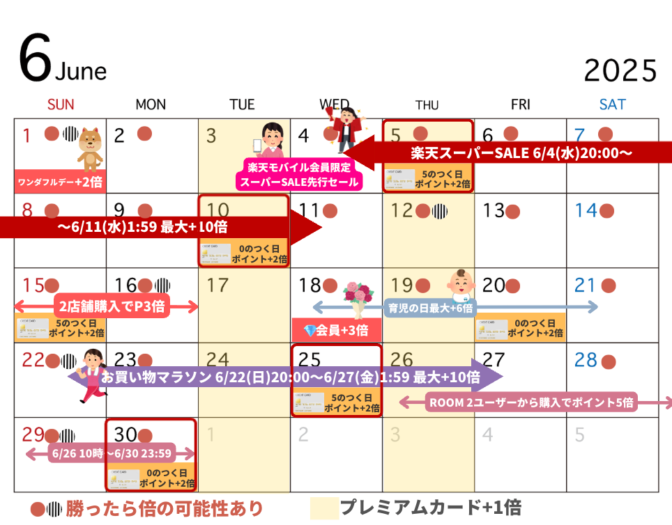 楽天市場のセールカレンダー(2025年6月版)がこちら↓